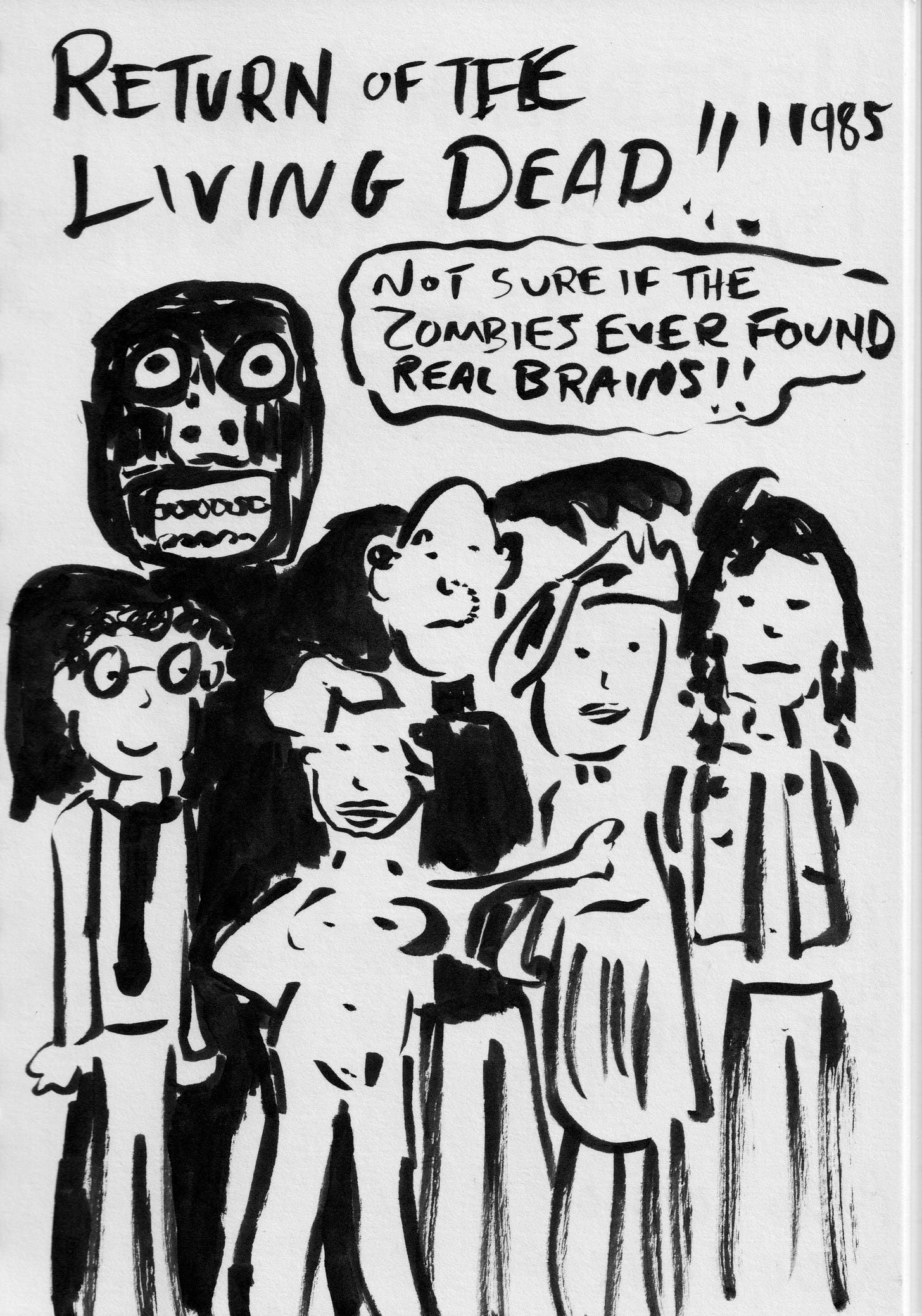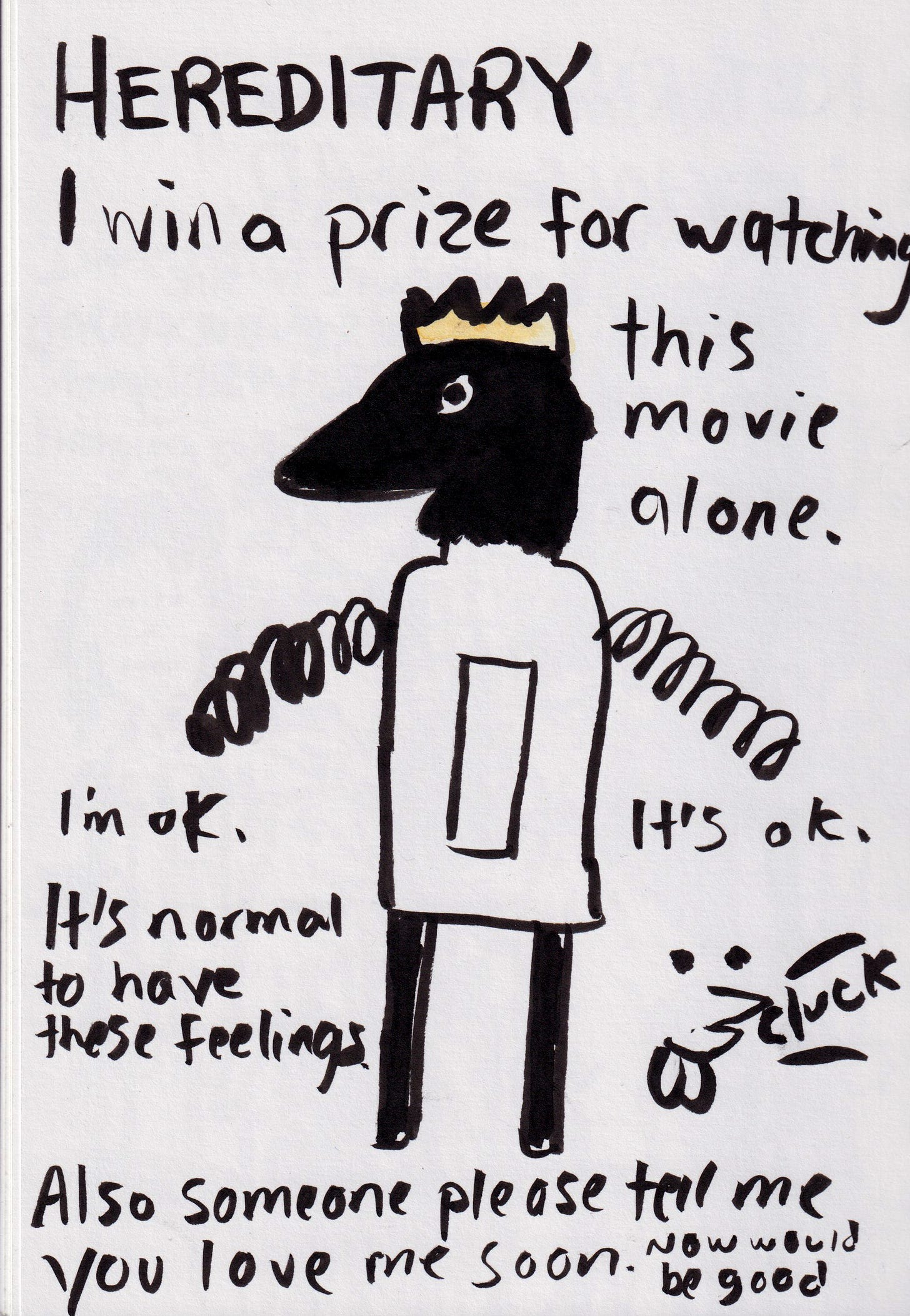 Posting these dumb drawings has made something awesome happen - folks have been telling me about movies they like and I watch them and then do dumb drawings of those. Here are those movies, plus a few more that I chose.